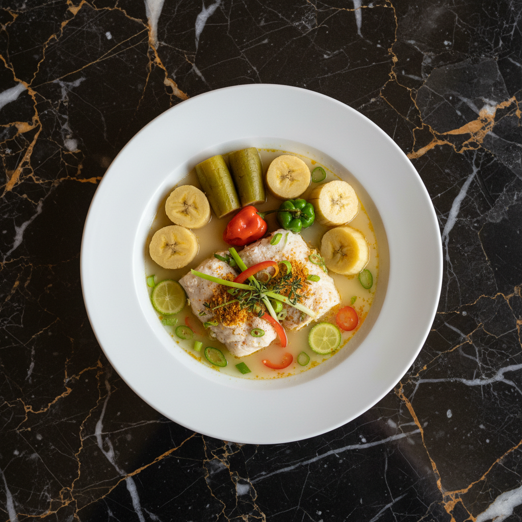 A delicate Caribbean fish dish where fish fillets are marinated in lime juice, herbs, and spices, then gently poached in a flavorful broth.