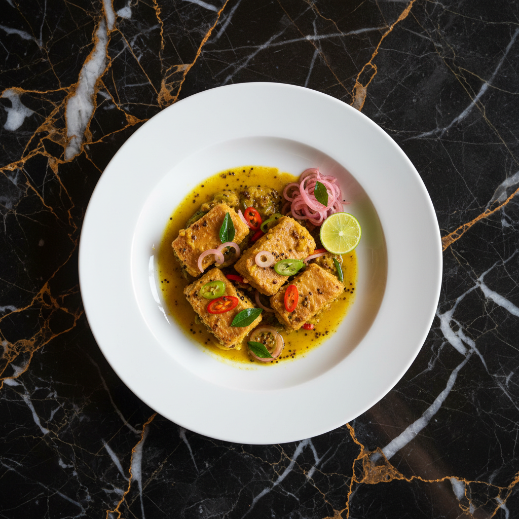 A classic Mauritian pickle dish featuring firm fish (often tuna) marinated and lightly fried, then preserved in a tangy, spicy mixture of mustard seeds, turmeric, vinegar, onions, and chilies. It's a flavorful appetizer or side dish.