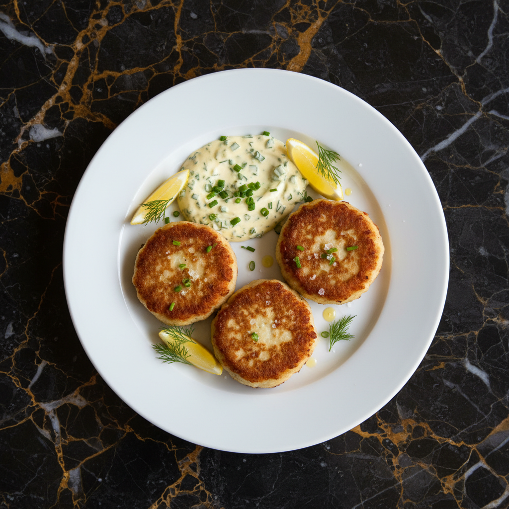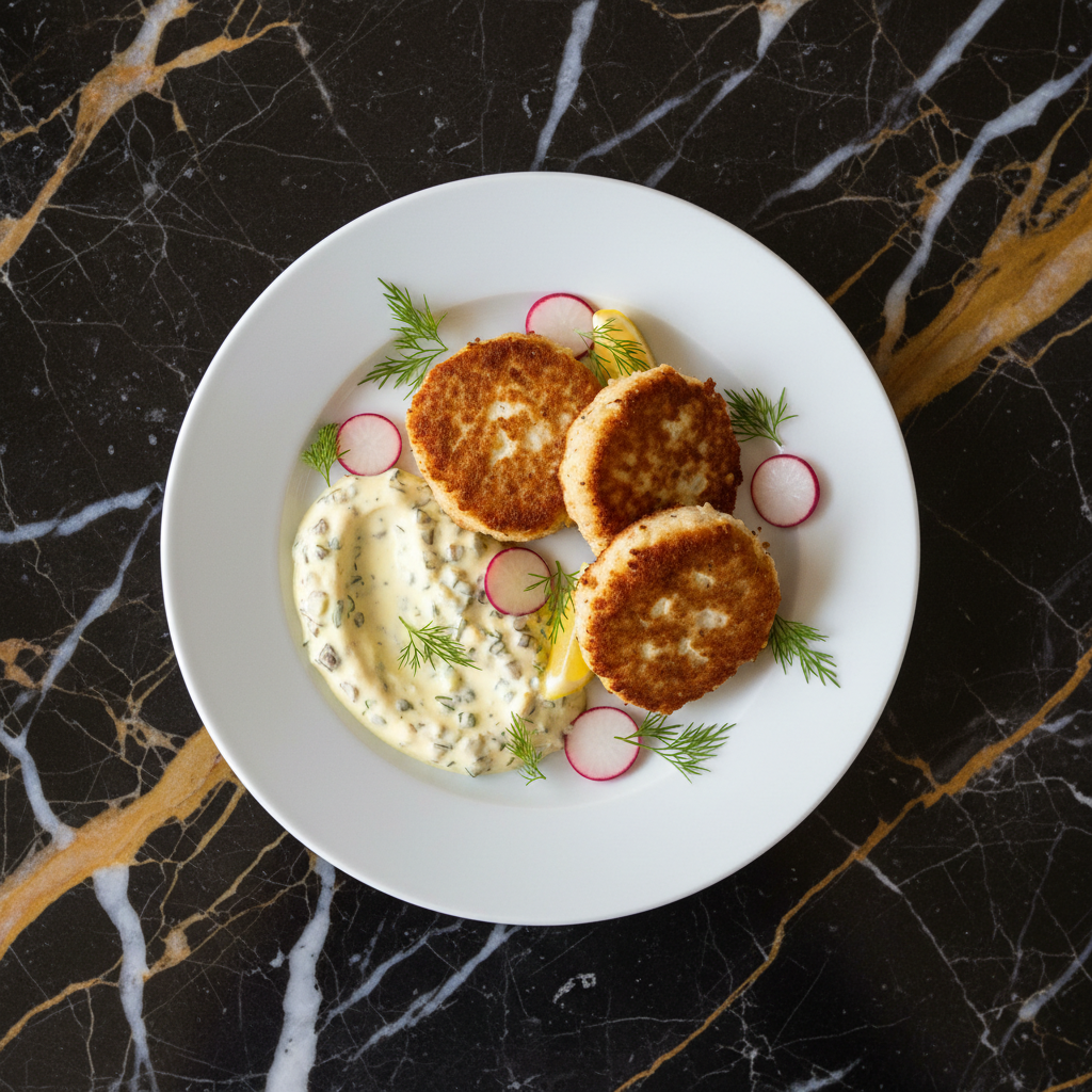 These delicate and flavorful Danish fish cakes, known as fiskefars, are made from a blend of white fish, herbs, and a touch of cream, pan-fried to a golden crisp. They are traditionally served with a tangy and creamy remoulade sauce, a classic accompaniment that elevates the dish.
