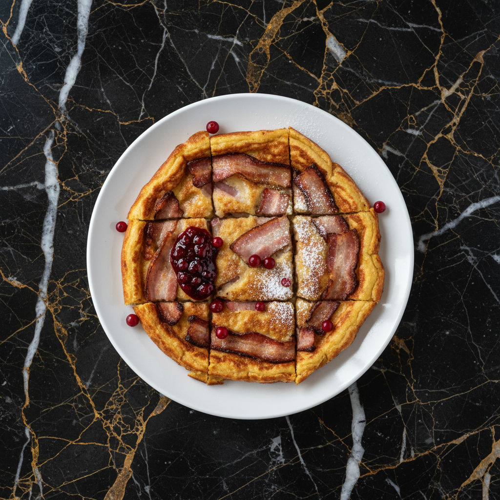 Flรคskpannkaka, also known as Ugnspannkaka, is a beloved Swedish oven-baked pancake dish. It features a savory batter cooked with crispy pieces of pork belly or bacon, resulting in a delightful contrast of textures and flavors. Traditionally served with lingonberry jam, it's a comforting and satisfying meal.