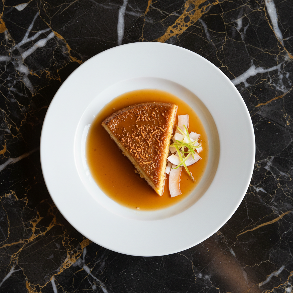 A rich and creamy coconut flan, a beloved Cuban dessert that combines the sweetness of condensed milk and coconut with a silky custard texture.