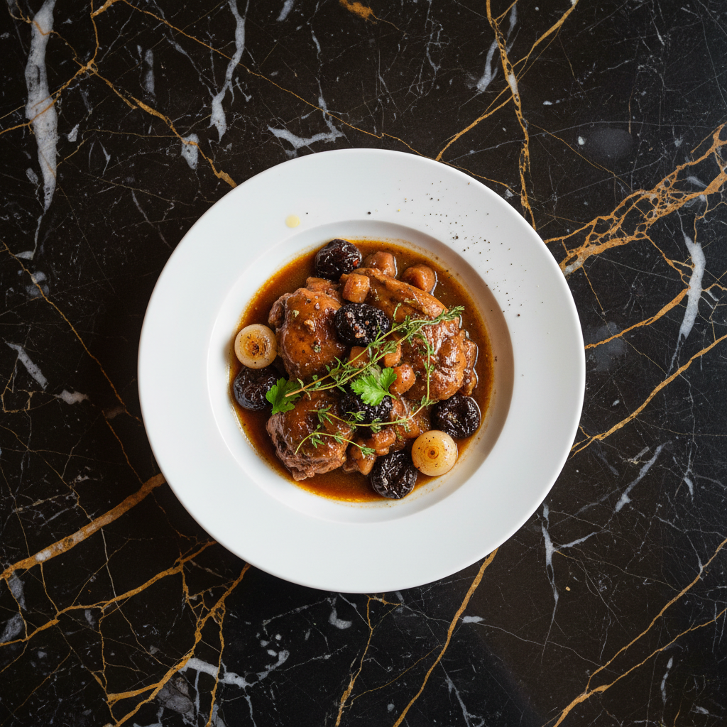 A rich and hearty Flemish rabbit stew slow-cooked in dark Belgian beer with sweet prunes, creating a complex flavor profile. This dish is a comforting classic, perfect for cooler weather.