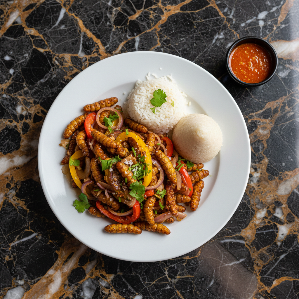 A unique and protein-rich Angolan delicacy, Catatos features caterpillars fried with garlic, and can be enhanced with onions and peppers. Often served with rice or Funge, it's known for its surprisingly pleasant texture and nutritional value.