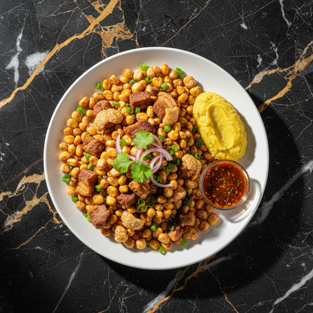 A hearty and flavorful dish combining crispy fried corn kernels (tostado) with savory pork cracklings (chicharrรณn). This is a popular snack or side dish in Ecuador, offering a delightful crunch and rich pork flavor.
