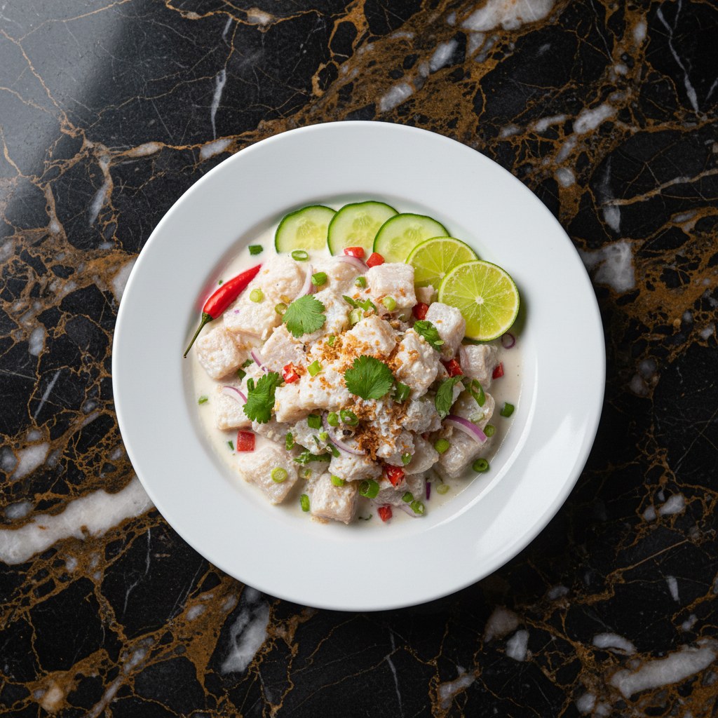 A refreshing and simple dish of raw fish marinated in coconut milk, lime juice, and local seasonings. It's a staple across many islands in Micronesia, often prepared with freshly caught fish.