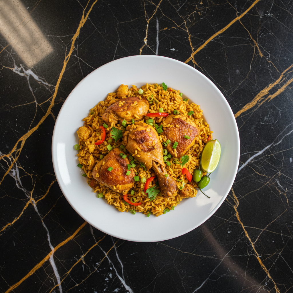 A vibrant and flavorful one-pot dish from Goiรกs, Brazil, featuring tender chicken pieces simmered with saffron-infused rice, vegetables, and the distinctive aroma of pequi (if available). This is hearty home-style cooking at its finest.