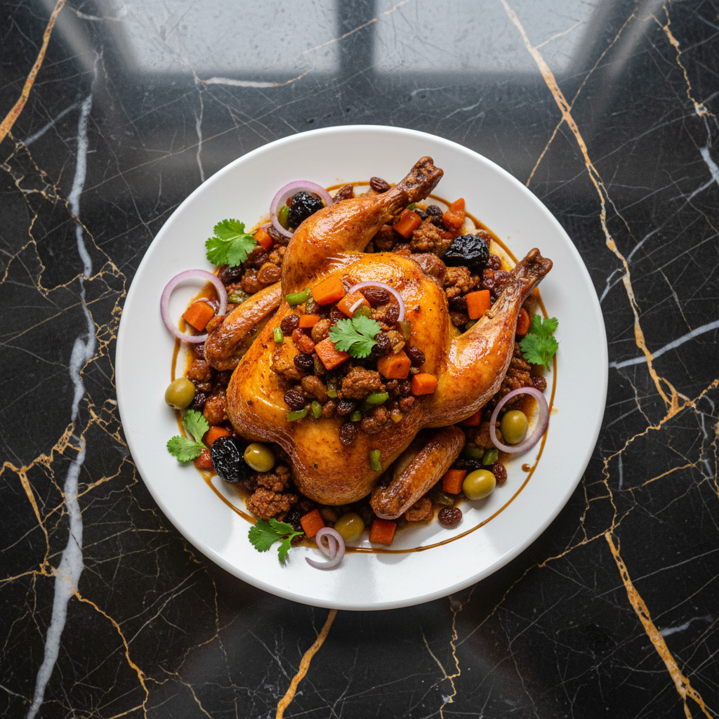 A festive and traditional Nicaraguan dish, Gallina Rellena features a whole hen stuffed with a savory mixture of ground pork, vegetables, fruits, and spices. It's a rich and flavorful centerpiece, often prepared for special occasions like Christmas.