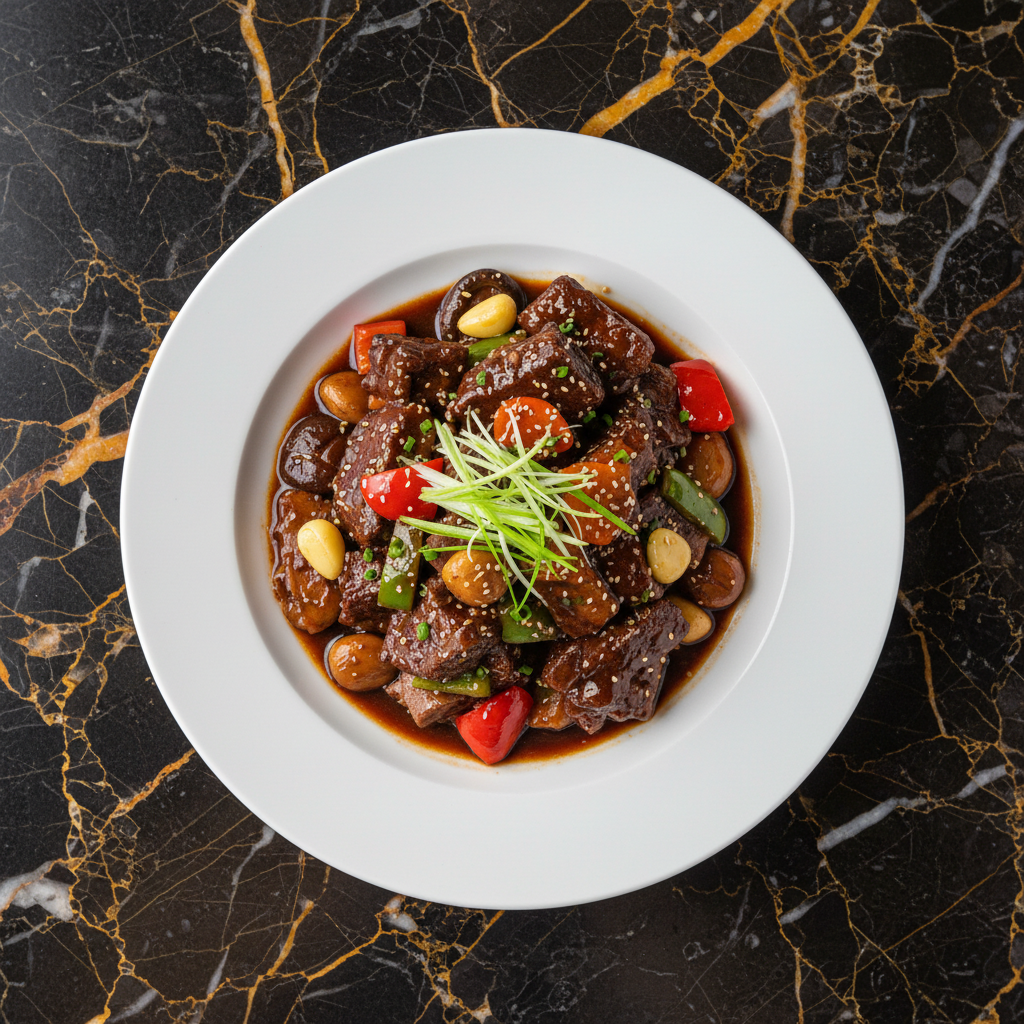 A classic Korean holiday dish, Galbi Jjim features incredibly tender beef short ribs braised in a rich, savory-sweet soy-based sauce with aromatics. The slow cooking process breaks down the meat, making it melt-in-your-mouth delicious.