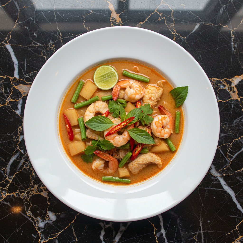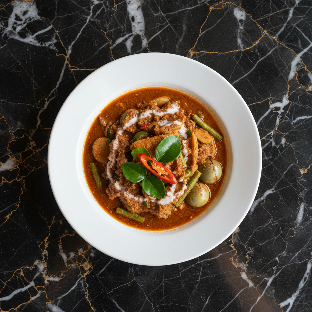 A fiercely flavorful and pungent curry from Southern Thailand, featuring fermented fish intestines as its signature ingredient. This dish is a true taste of the region, known for its intense aroma and complex, savory profile. It's a dish that is deeply loved by those who appreciate its unique character.