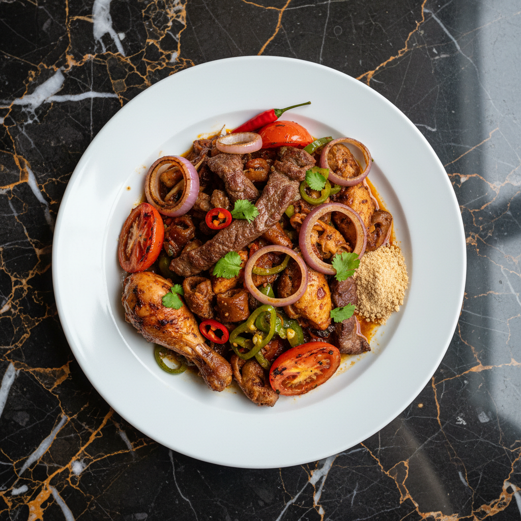 Gango is a popular Zimbabwean street food and social dish, featuring a flavorful mix of grilled meats (often chicken, beef, and sometimes offal) cooked together with vegetables like onions and tomatoes. It's typically prepared over an open fire or in a single pot, creating a hearty and communal meal often enjoyed at gatherings and celebrations. Gango embodies the spirit of Zimbabwean social culture, where families and friends come together around the grill.