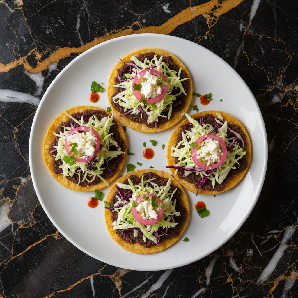 Garnaches are a popular Belizean street food consisting of a crispy fried corn tortilla topped with refried beans, shredded cabbage, pickled onions, and cheese. They offer a delightful combination of textures and savory flavors.