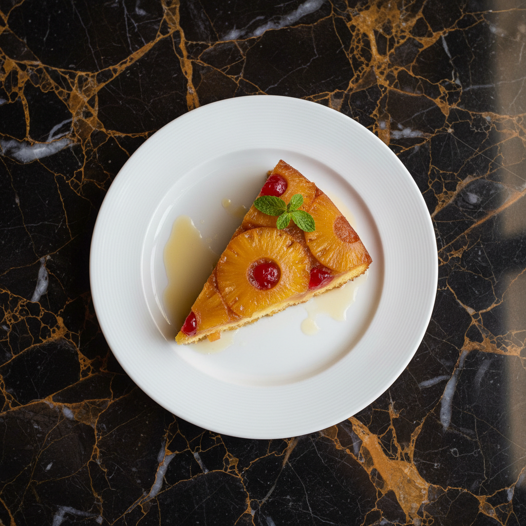 A light and airy pineapple upside-down cake, a beloved Mauritian dessert with a tropical twist. This cake features a moist sponge infused with pineapple flavor, topped with caramelized pineapple rings and cherries.