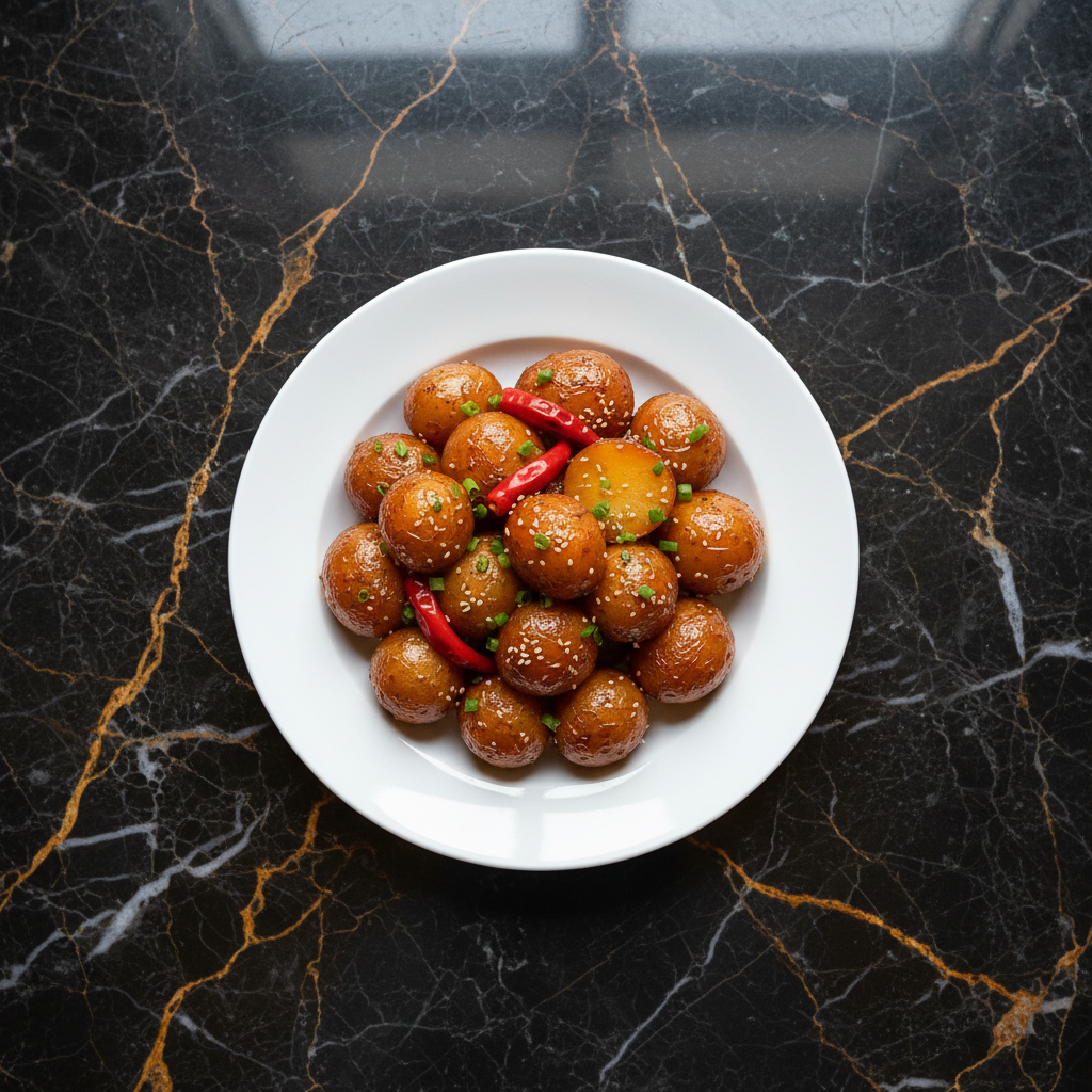 Tender, bite-sized potatoes coated in a glossy, sweet, and savory soy glaze. This popular banchan (side dish) is simple to make and incredibly comforting.