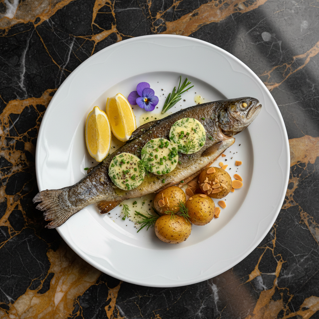 A classic Austrian dish featuring whole trout grilled to perfection, seasoned with herbs and spices, and served with a rich herb butter. This dish highlights the fresh fish often found in Austria's alpine lakes and rivers.