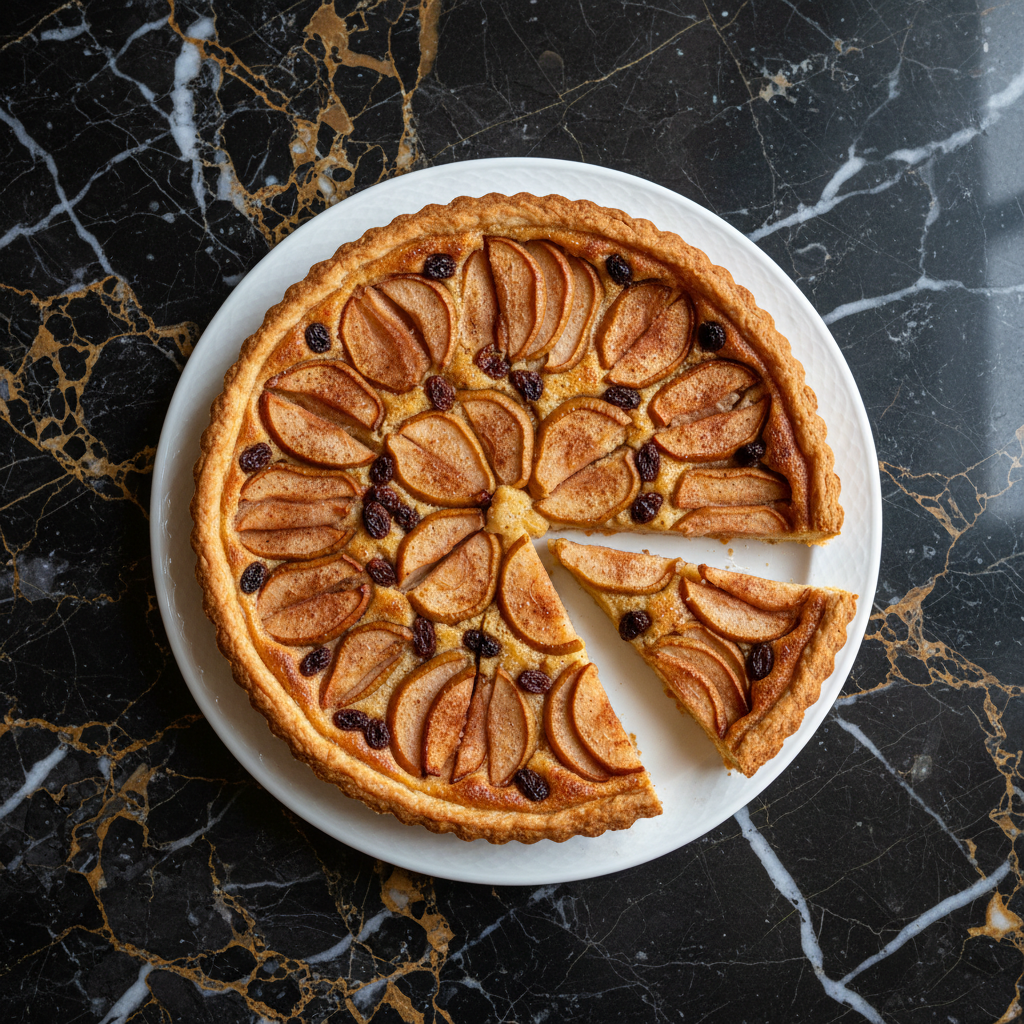 A classic Swiss tart from Geneva, traditionally enjoyed during the Escalade celebrations. This tart features a buttery crust filled with tender pears, raisins, and a hint of spice, all baked to golden perfection.