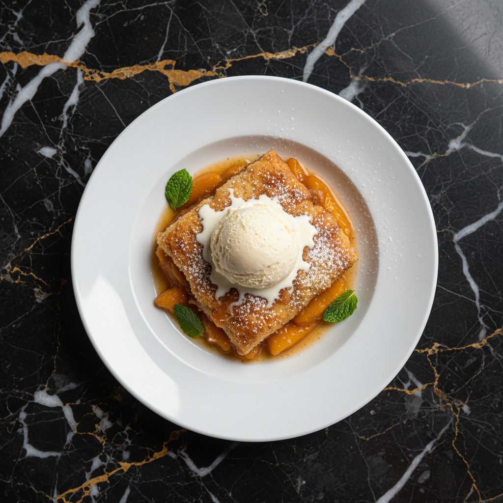 A quintessential Southern dessert, this Georgia Peach Cobbler features ripe, juicy peaches baked under a sweet, tender biscuit-like topping. It's a comforting and classic treat, especially when served warm with a scoop of vanilla ice cream.