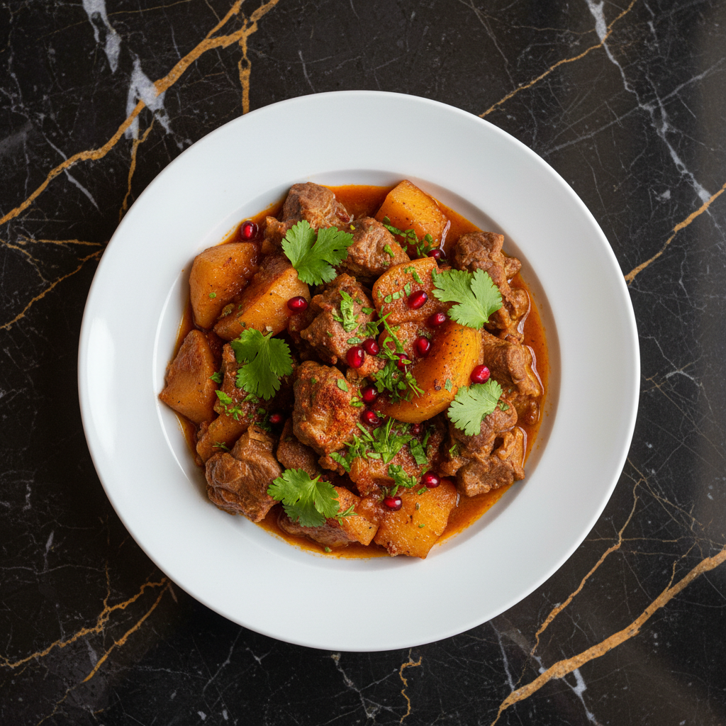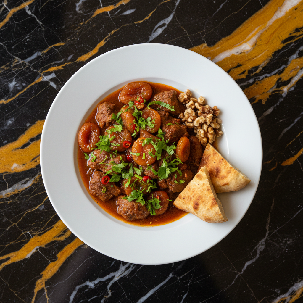 A hearty and aromatic stew that balances the richness of lamb with the sweet and tangy notes of dried apricots. This dish is slow-cooked to perfection, allowing the flavors to meld beautifully.