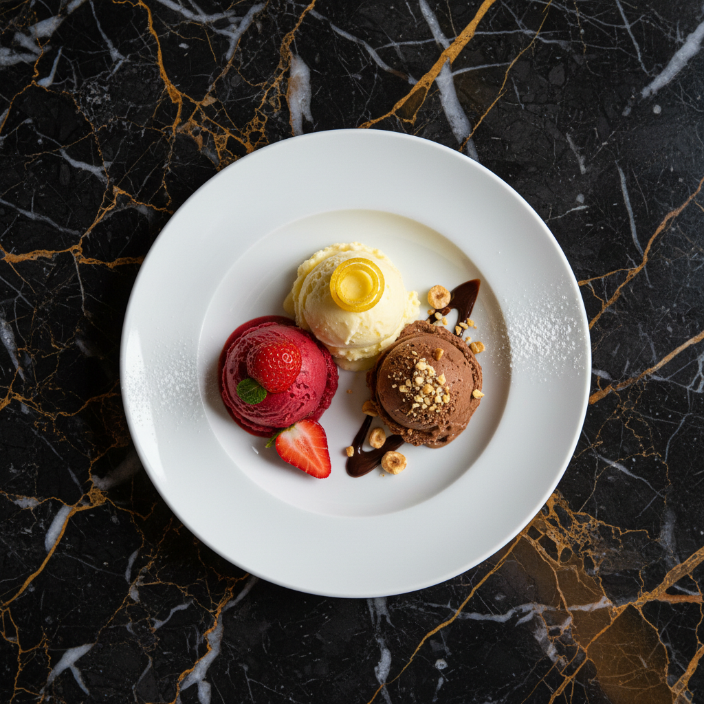 Authentic Italian gelato, characterized by its denser, less airy texture and intensely concentrated flavors compared to traditional ice cream. It's a rich, creamy frozen dessert.