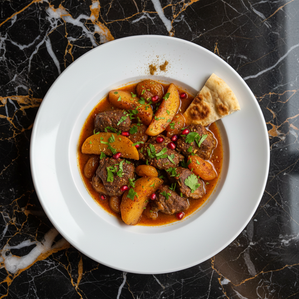 A fragrant and deeply flavorful stew featuring tender lamb slow-cooked with the unique sweetness of quince and the tartness of dried apricots. This dish is a celebration of Georgian culinary traditions, balancing savory meat with the subtle fruitiness of native produce and aromatic spices.