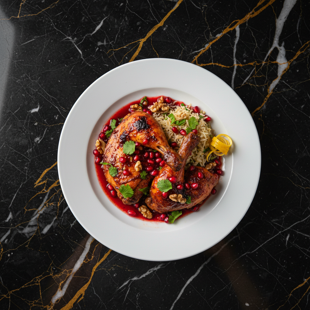 A rich and flavorful chicken dish featuring tender chicken pieces braised in a tangy and slightly sweet sauce made from pomegranate juice, pomegranate molasses, and a blend of aromatic spices. This dish is often prepared for special occasions and holidays, offering a unique balance of sweet, tart, and savory notes.