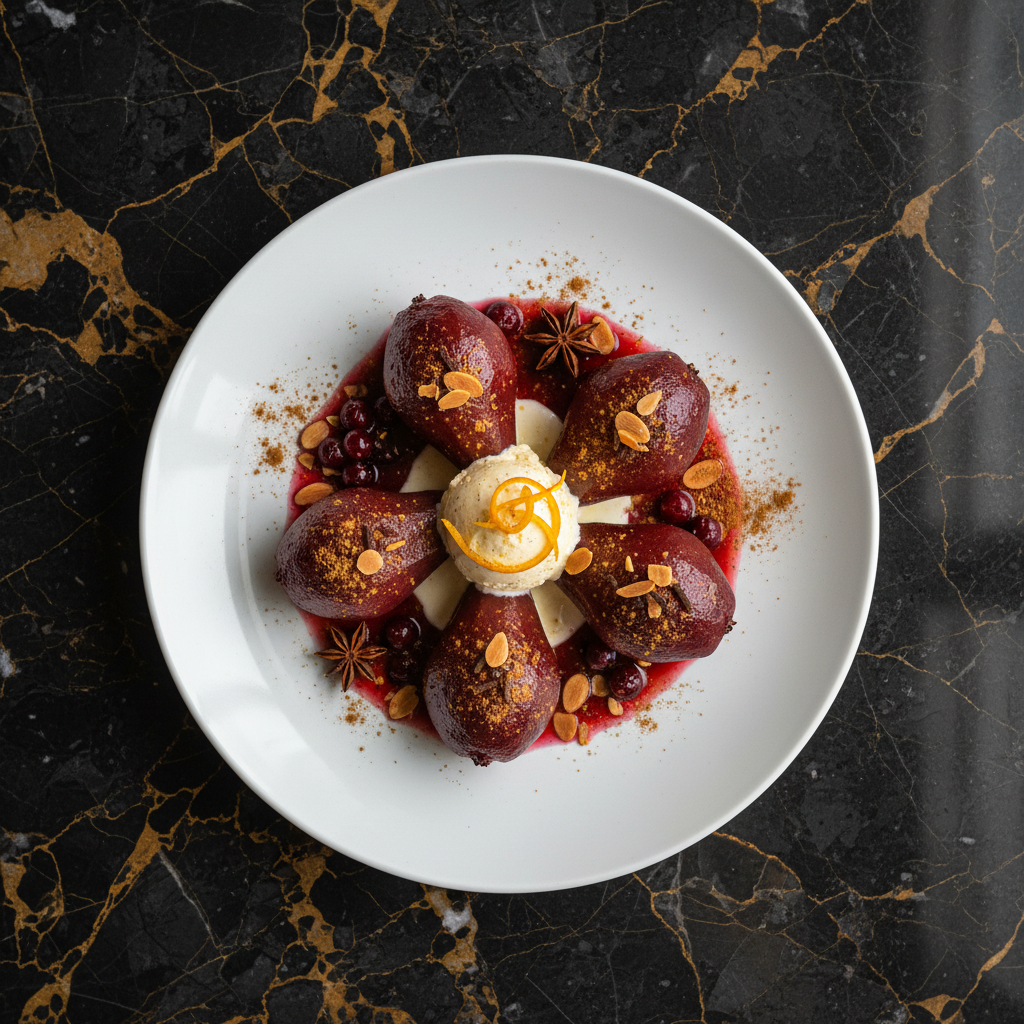 Gestoofde Peren are tender, spiced pears that are slowly simmered in red wine or fruit juice until they are soft and have absorbed the aromatic flavors of cinnamon, cloves, and sometimes star anise. They are a popular dessert or side dish, especially during the autumn and winter months, often served with vanilla ice cream or as an accompaniment to savory dishes like game or stoofvlees (stewed meat).