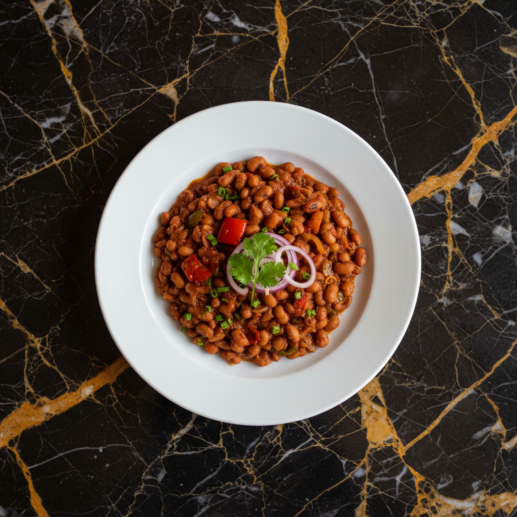 A flavorful and savory stew made from fried black-eyed peas, simmered in a rich tomato-based sauce with onions, peppers, and spices. This dish is often served as a side or a main, providing a satisfying protein-rich meal.