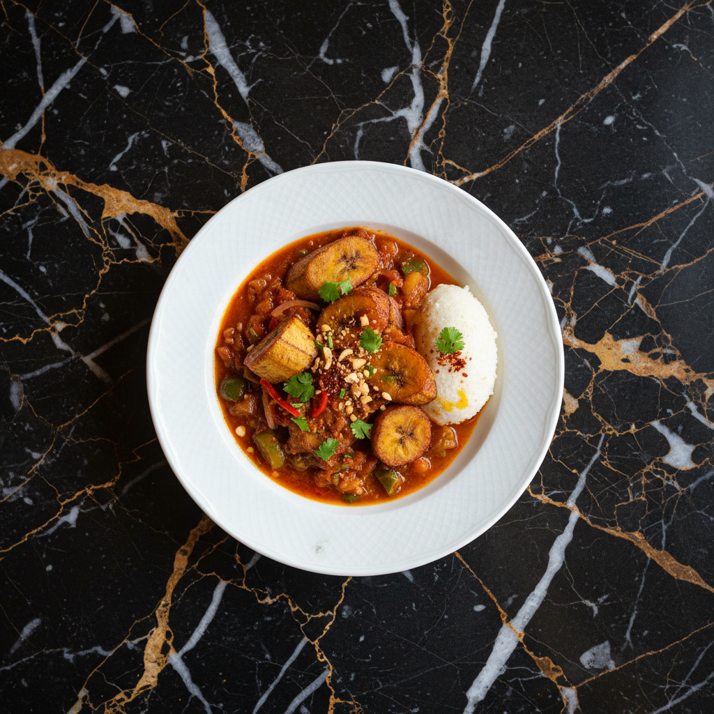 A flavorful and hearty stew made with ripe plantains, tomatoes, onions, and spices, often served with rice or fufu. This dish highlights the versatility of plantains in Ghanaian cuisine.