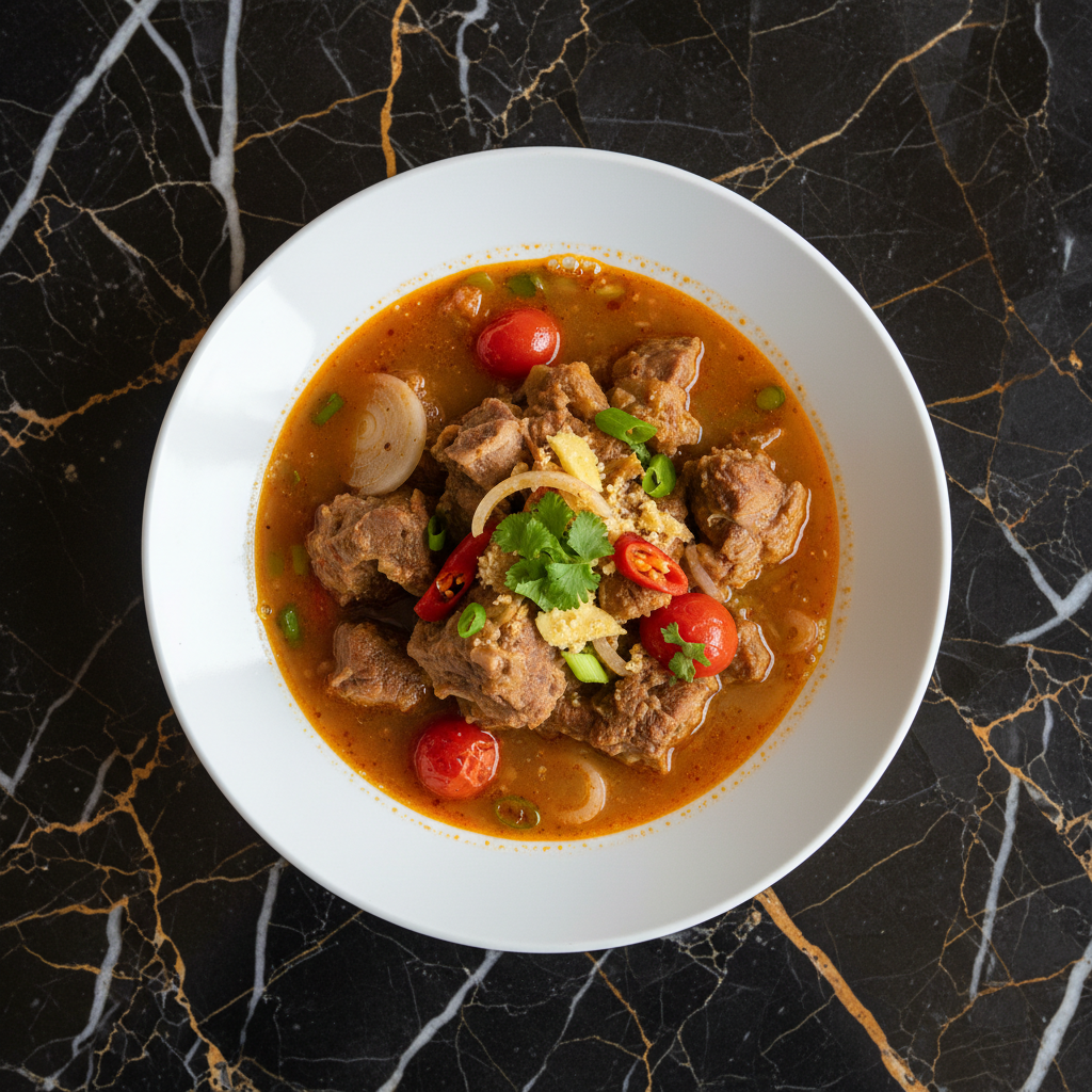 A light and flavorful broth-based soup made with tender goat meat, tomatoes, ginger, and aromatic spices. It's a popular and comforting soup often enjoyed on its own or with a side of rice or fufu.