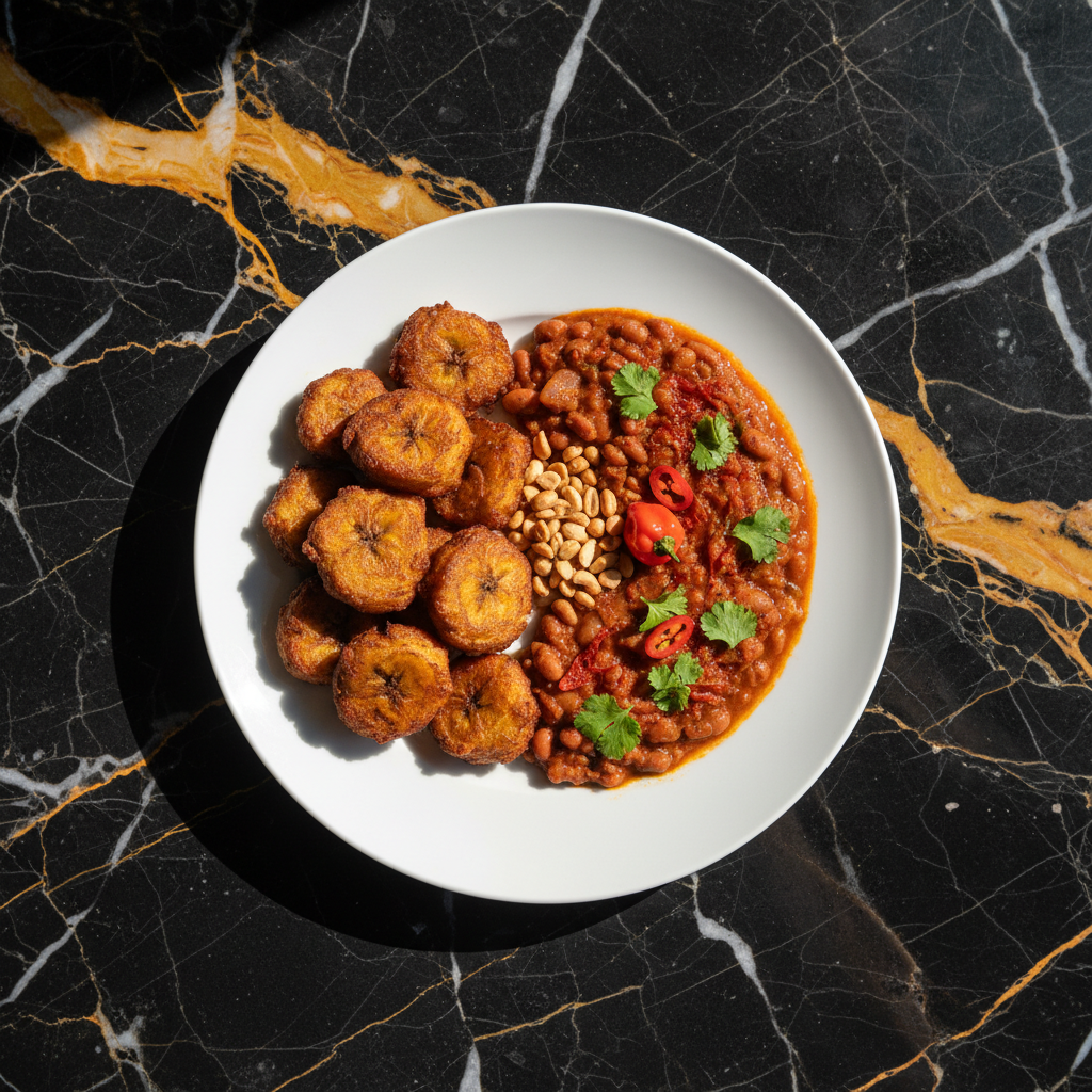 A delightful combination of fried ripe plantains (kakro) served with a flavorful bean stew. This dish offers a sweet and savory contrast, showcasing the popular pairing of plantains and beans in Ghanaian cuisine.