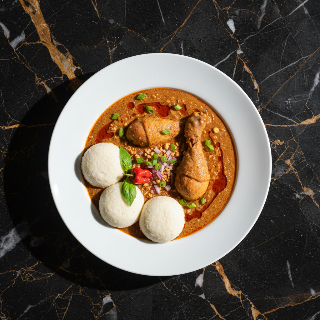 Nkatenkwan is a rich and flavorful peanut butter soup, a beloved staple in Ghanaian cuisine. It's typically made with chicken or meat, blended with tomatoes, onions, ginger, garlic, and of course, peanut butter, creating a creamy and savory broth. Often served with fufu or rice, it's a comforting and hearty dish.