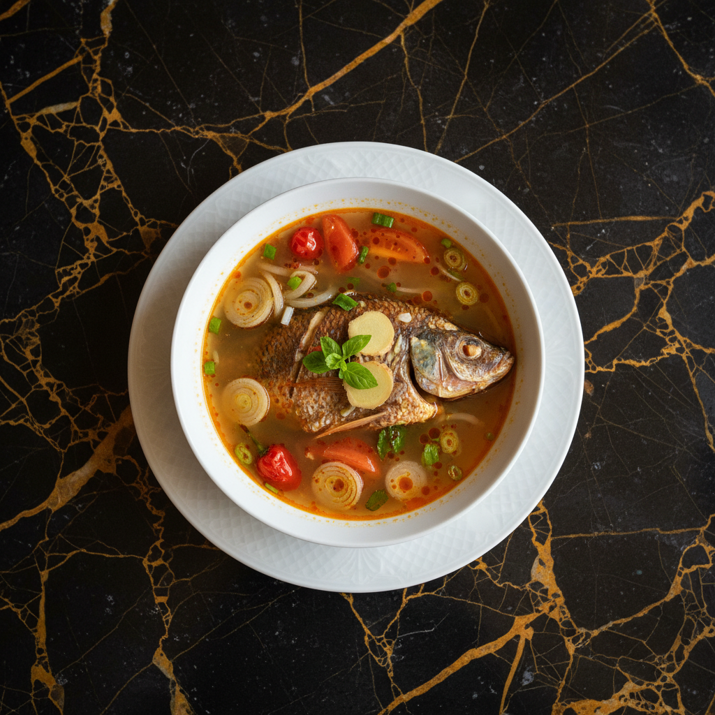 A light, flavorful, and aromatic soup featuring whole tilapia, simmered with tomatoes, onions, ginger, and a medley of herbs and spices. It's a healthier alternative to heavier stews.