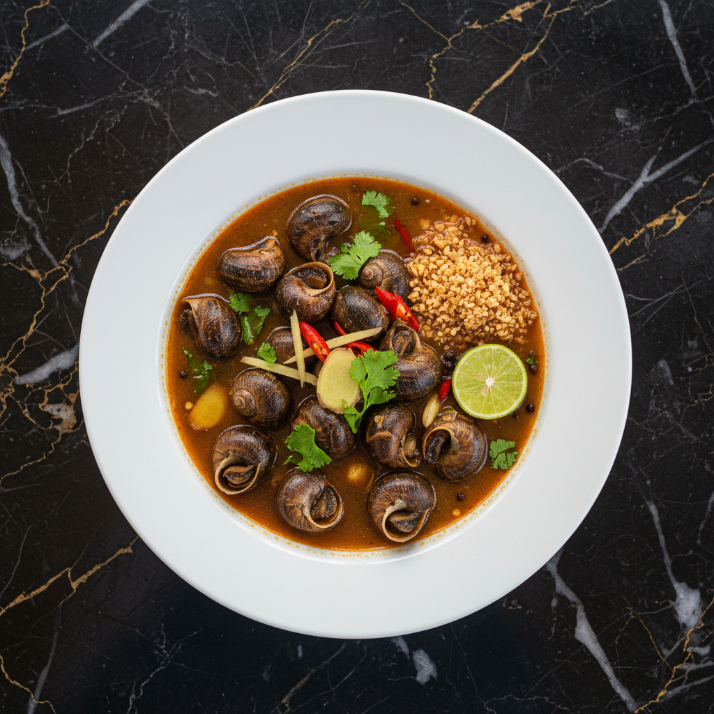 Ghonghi ko Jhol is a flavorful and nutritious soup made with freshwater snails, a delicacy particularly popular among the Tharu community in the Terai region of Nepal. It's known for its unique texture and the rich, savory broth infused with local spices.