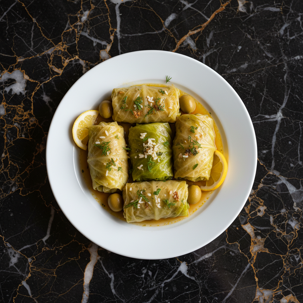 Giaprakia are tender cabbage leaves stuffed with a flavorful mixture of rice, minced meat, and aromatic herbs, simmered in a savory broth. This version is a comforting and hearty dish, perfect for a family meal. It's a testament to the resourcefulness and deliciousness of traditional Cypriot home cooking.