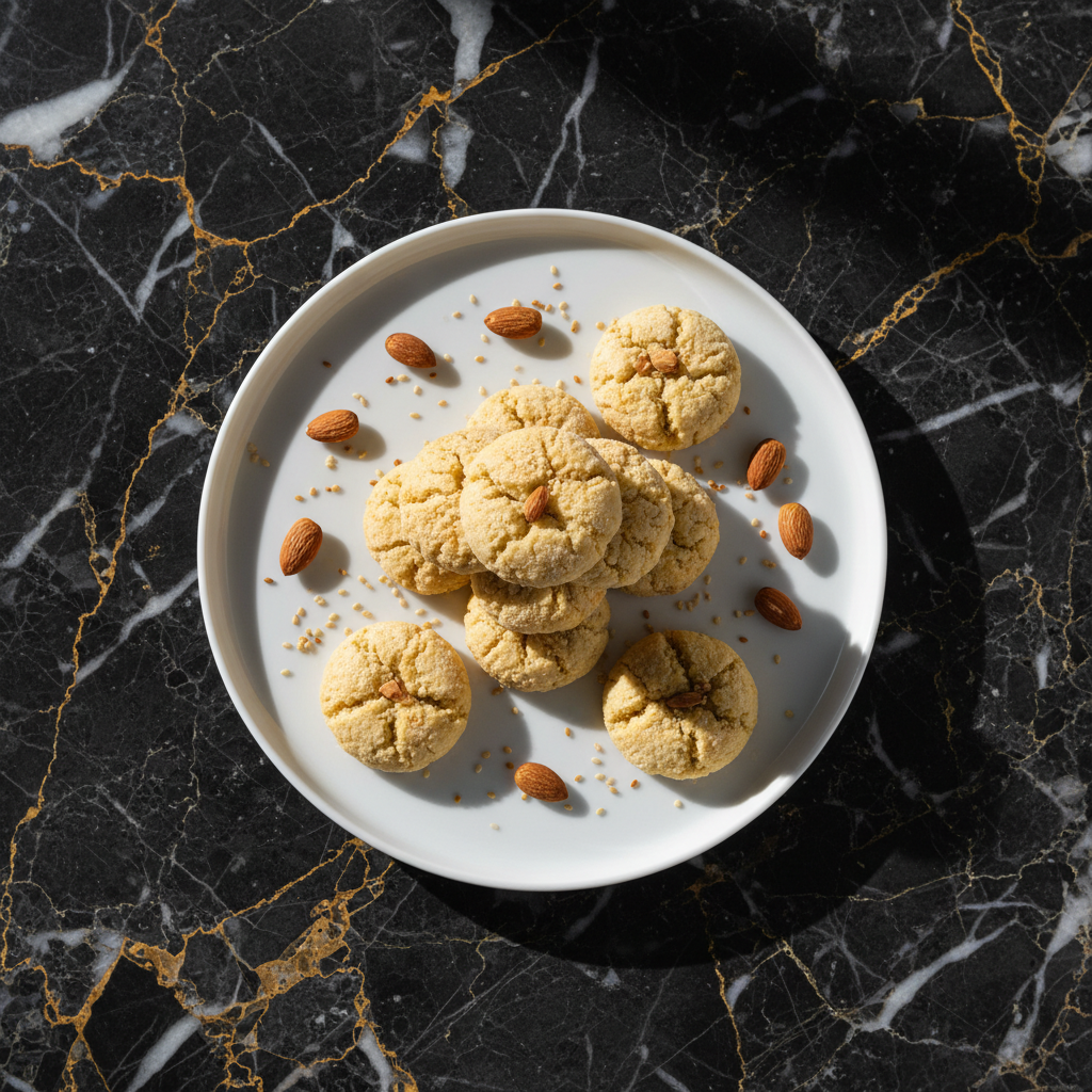 Authentic Moroccan Ghriba Bahla are delightful, crumbly cookies characterized by their signature cracked surface. Infused with the nutty flavors of sesame and almonds, these cookies are a perfect accompaniment to a cup of traditional Moroccan mint tea.