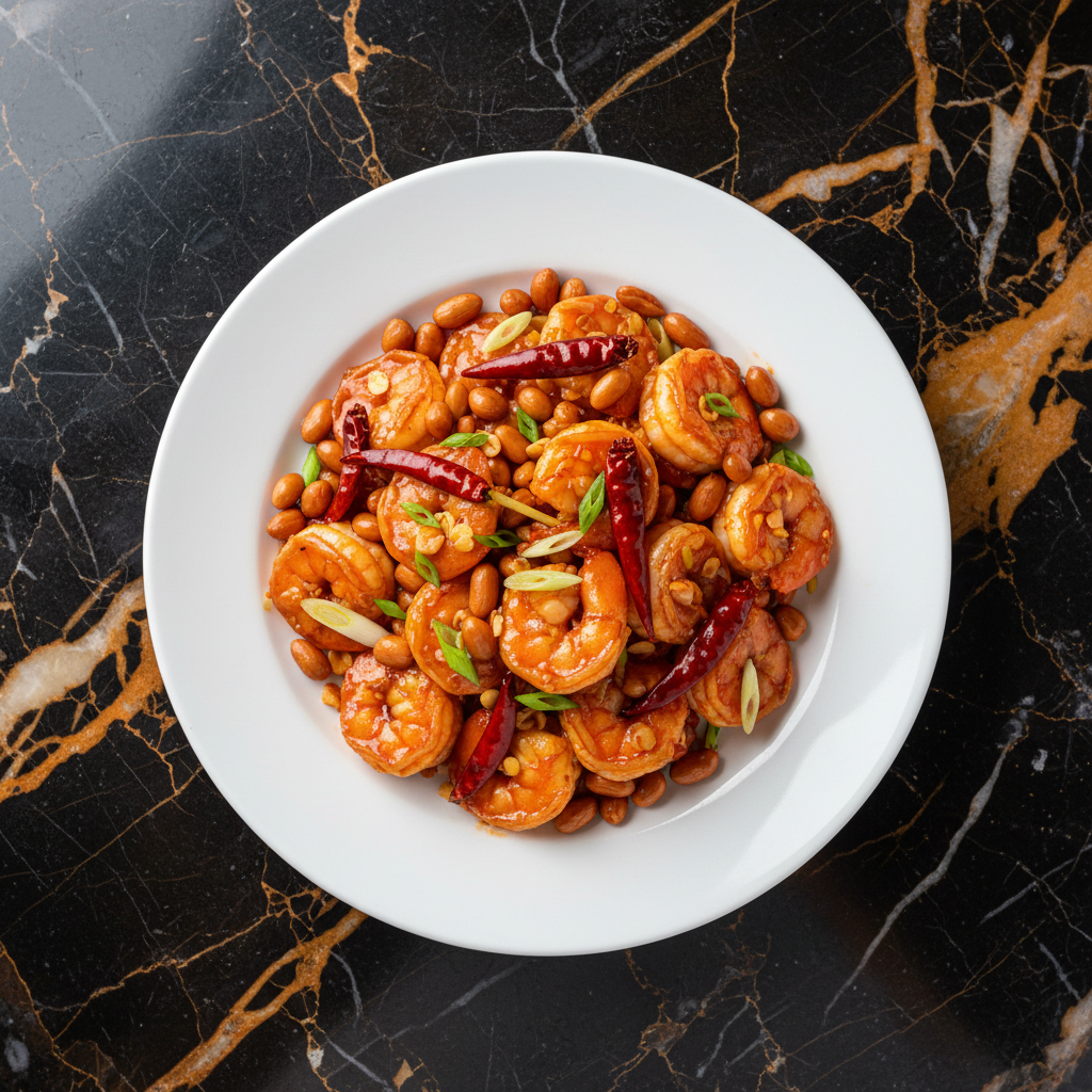 A classic Sichuan stir-fry featuring plump shrimp, crunchy peanuts, and a vibrant sweet, sour, and spicy sauce. This shrimp version is often considered lighter and quicker to prepare than its chicken counterpart.