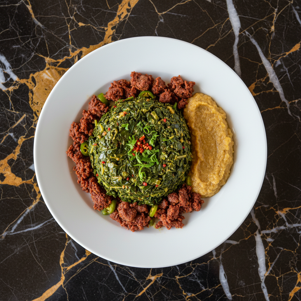 A classic Ethiopian vegetarian and vegan side dish featuring tender collard greens sautรฉed with aromatic spices. Traditionally enjoyed during fasting periods, it's also a delicious accompaniment to many meals.