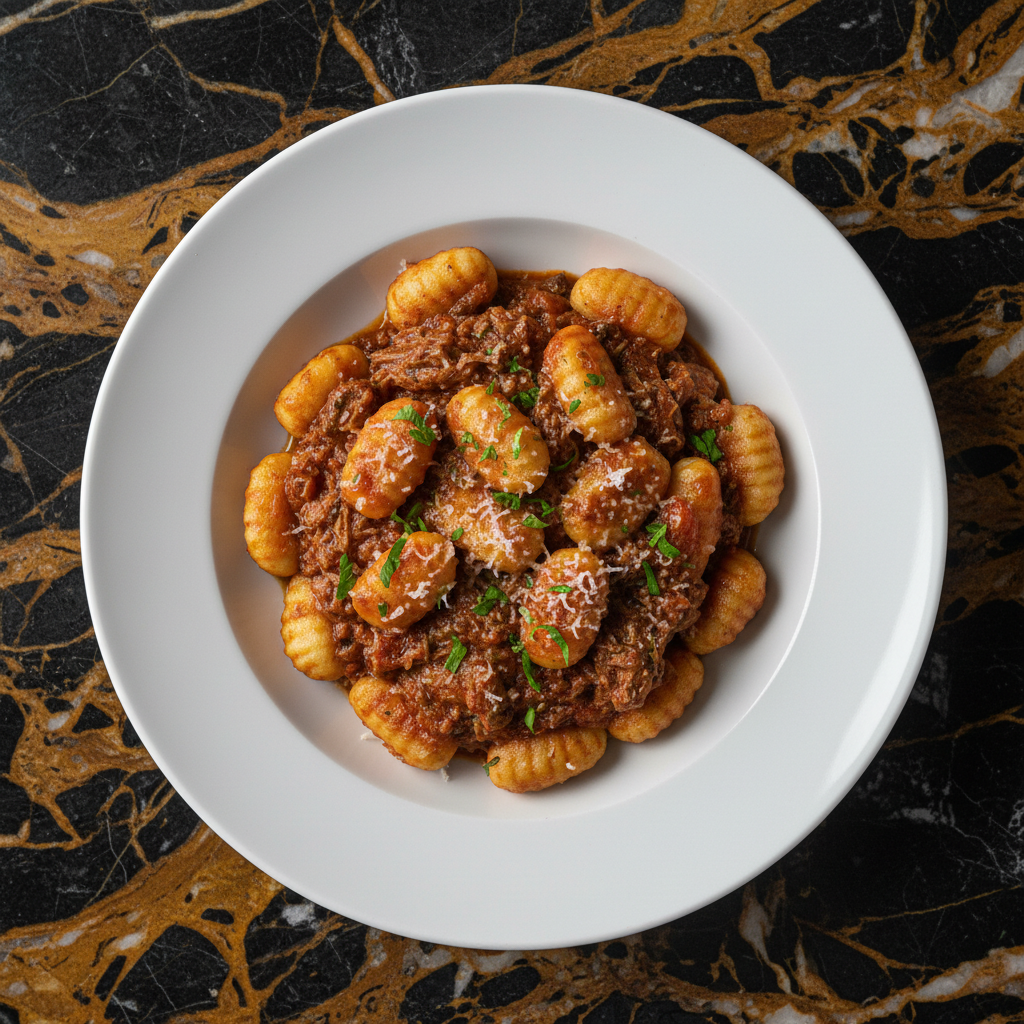 A hearty and flavorful dish featuring tender lamb slow-cooked in a rich tomato-based sauce, served over tender potato gnocchi. This dish combines Italian influence with Uruguayan love for lamb.