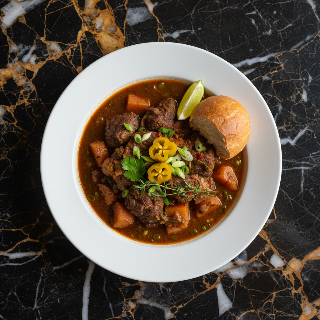 A rich and hearty stew made with tender goat meat, simmered with aromatic spices, vegetables, and often a touch of local rum or stout for depth of flavor. It's a comforting dish that showcases the island's love for slow-cooked, flavorful meals.