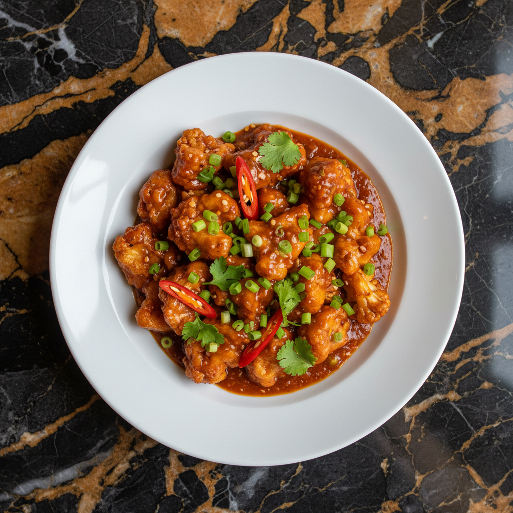 A popular Indo-Chinese fusion dish featuring crispy fried cauliflower florets tossed in a savory, sweet, and spicy sauce. Perfect as an appetizer or a flavorful side dish.