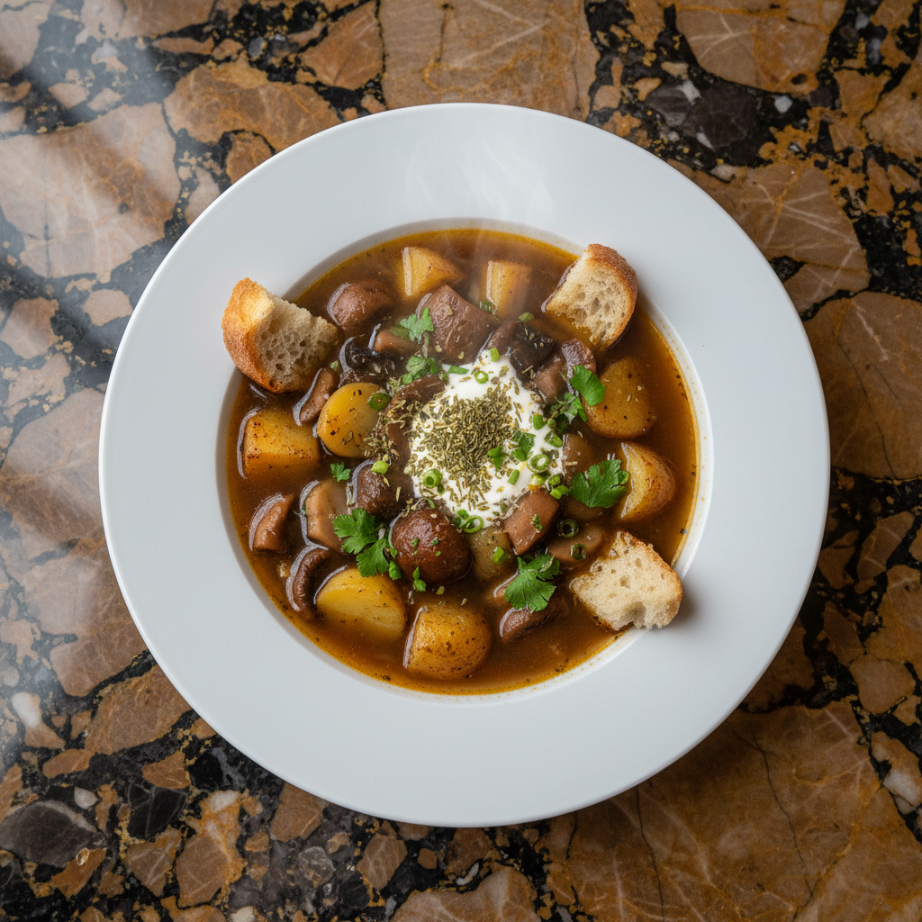 A hearty and flavorful Slovenian mushroom and potato soup, showcasing the abundance of wild mushrooms found in Slovenia's forests. It's a comforting dish, often enriched with a dollop of sour cream.