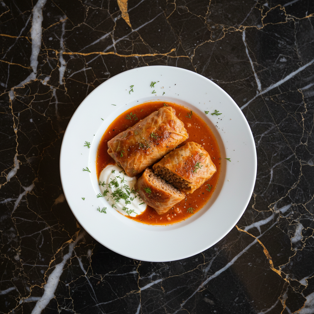 Hearty and comforting Russian cabbage rolls, featuring a savory mixture of ground meat and rice, tenderly wrapped in blanched cabbage leaves and braised in a rich tomato-sour cream sauce. A true taste of home.
