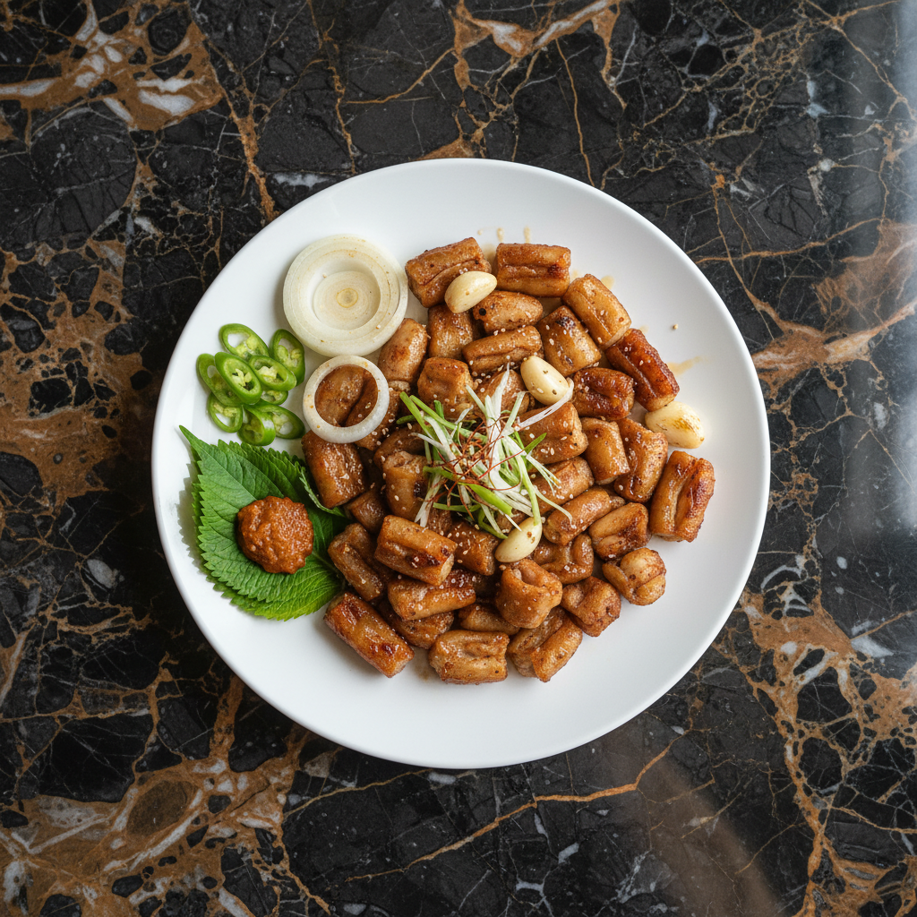 Gopchang Gui is a popular Korean grilled dish featuring beef small intestines, known for their chewy texture and rich, savory flavor. Often marinated and grilled over an open flame, it's a beloved anju (food to accompany alcohol) and a delicacy enjoyed by many Koreans.
