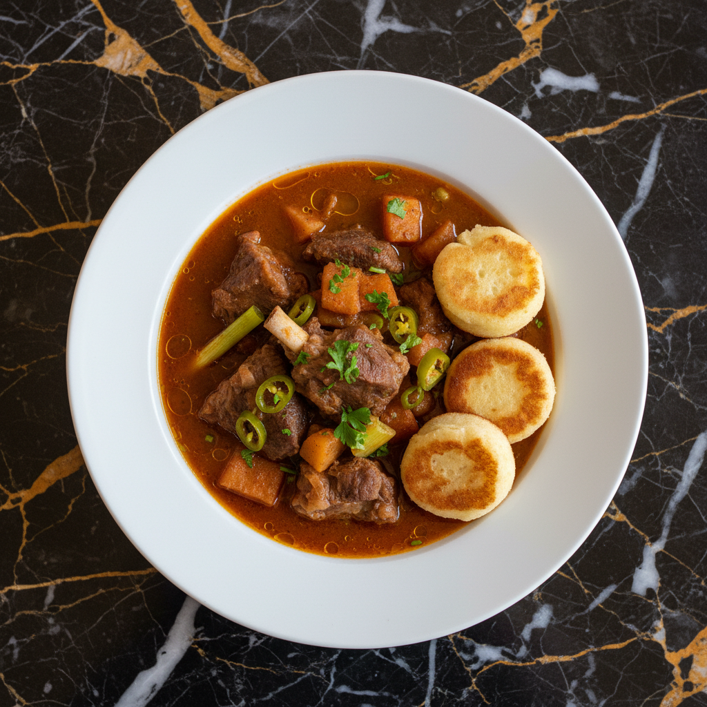 A hearty and flavorful stew made with tender goat meat, vegetables, and aromatic spices, often considered a national dish. It's known for its rich broth and comforting qualities.
