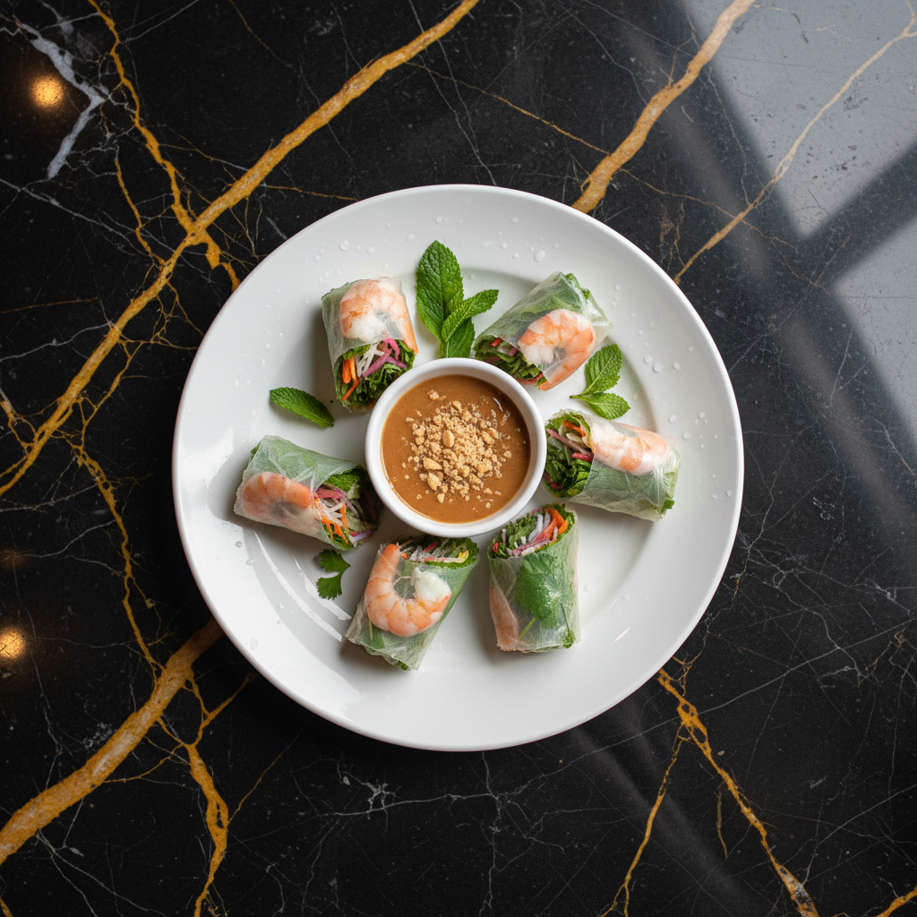 Delicate, translucent rice paper wrappers encase a vibrant medley of fresh herbs, tender pork, savory shrimp, and slippery rice vermicelli. These Gแปi Cuแปn are a refreshing and healthy appetizer or light meal, perfectly complemented by a rich peanut dipping sauce.