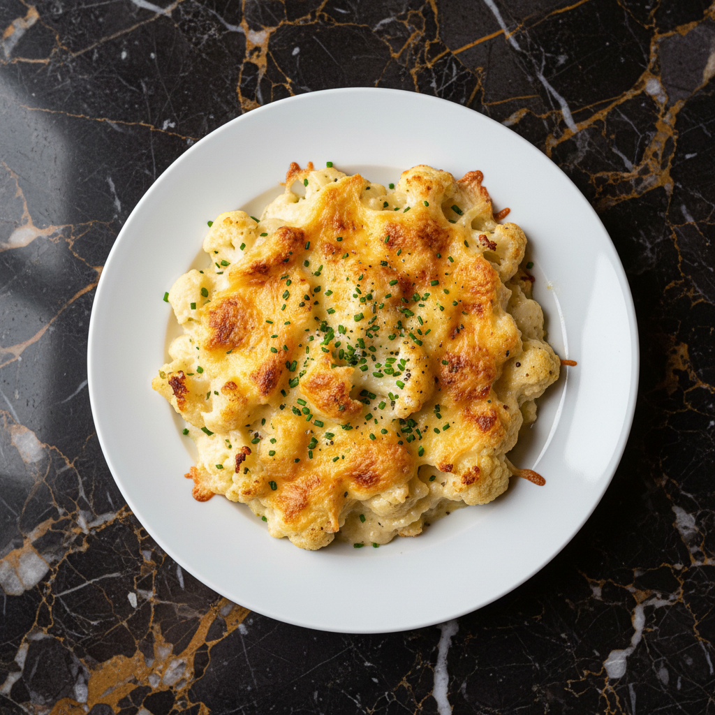 A classic French cauliflower gratin featuring tender cauliflower florets enveloped in a rich, creamy Mornay sauce, topped with golden-brown breadcrumbs and melted Gruyรจre cheese. This comforting side dish is perfect for any occasion.