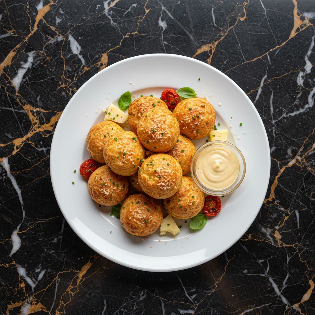 Light and airy savory cheese puffs originating from Burgundy, France. Made from choux pastry and filled with Gruyรจre cheese, these gougรจres are perfect as an appetizer, with wine, or as a delightful snack.