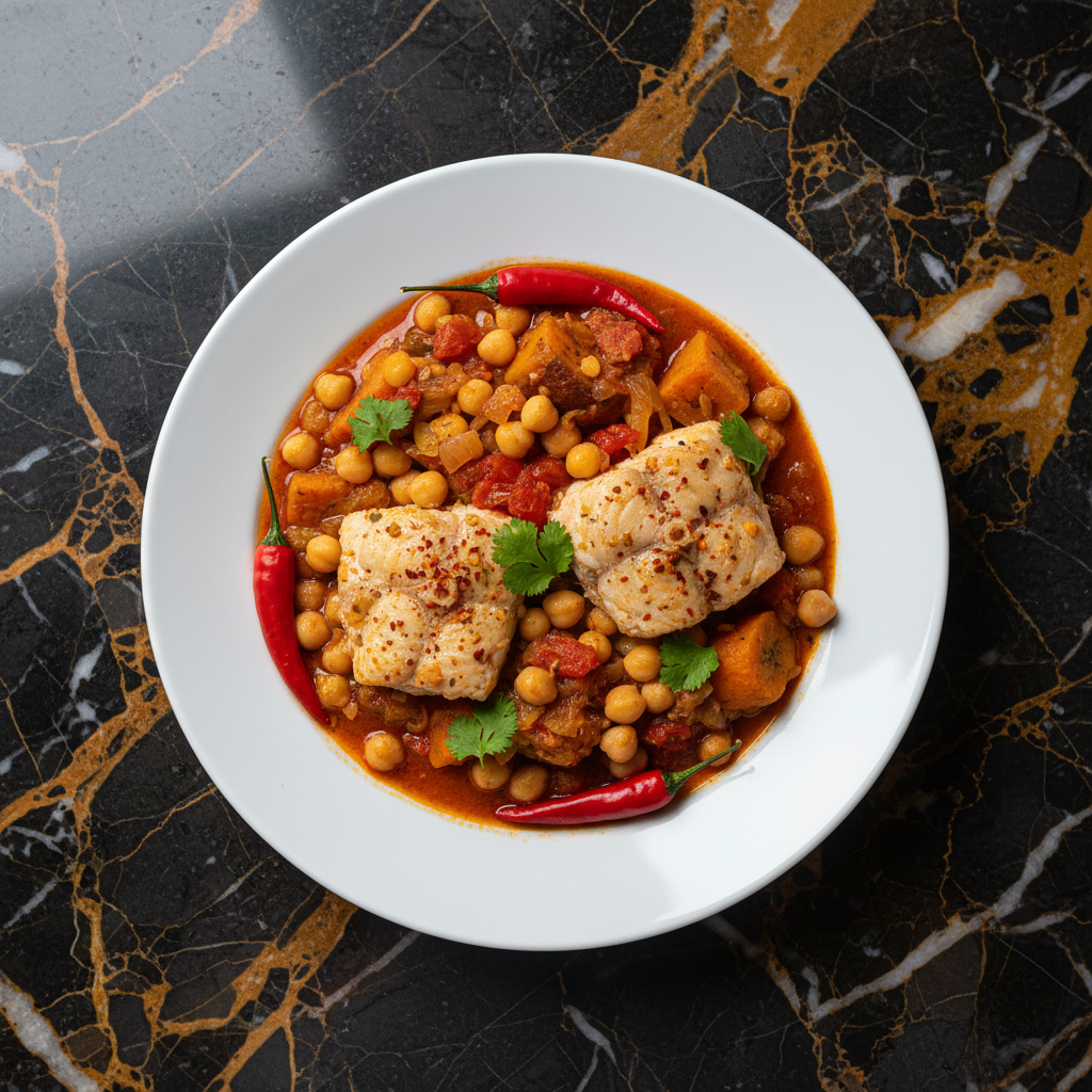 A hearty and flavorful stew featuring chickpeas and fish, often simmered with vegetables and aromatic spices. This dish showcases the importance of both legumes and seafood in Guinea-Bissau's cuisine.