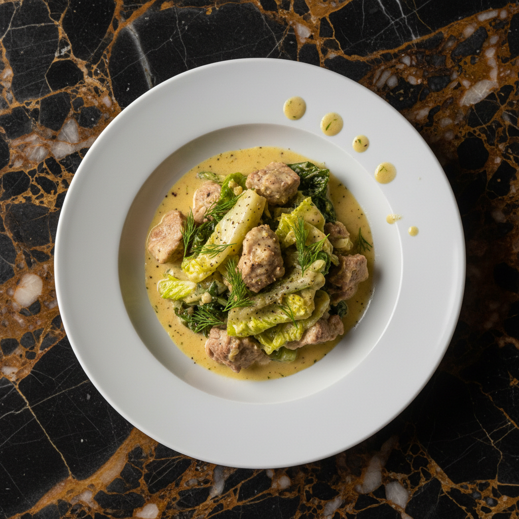 A comforting and classic Greek stew featuring tender lamb shoulder simmered in a rich broth, then finished with a delicate avgolemono (egg-lemon) sauce and wilted romaine lettuce. Perfect for spring.