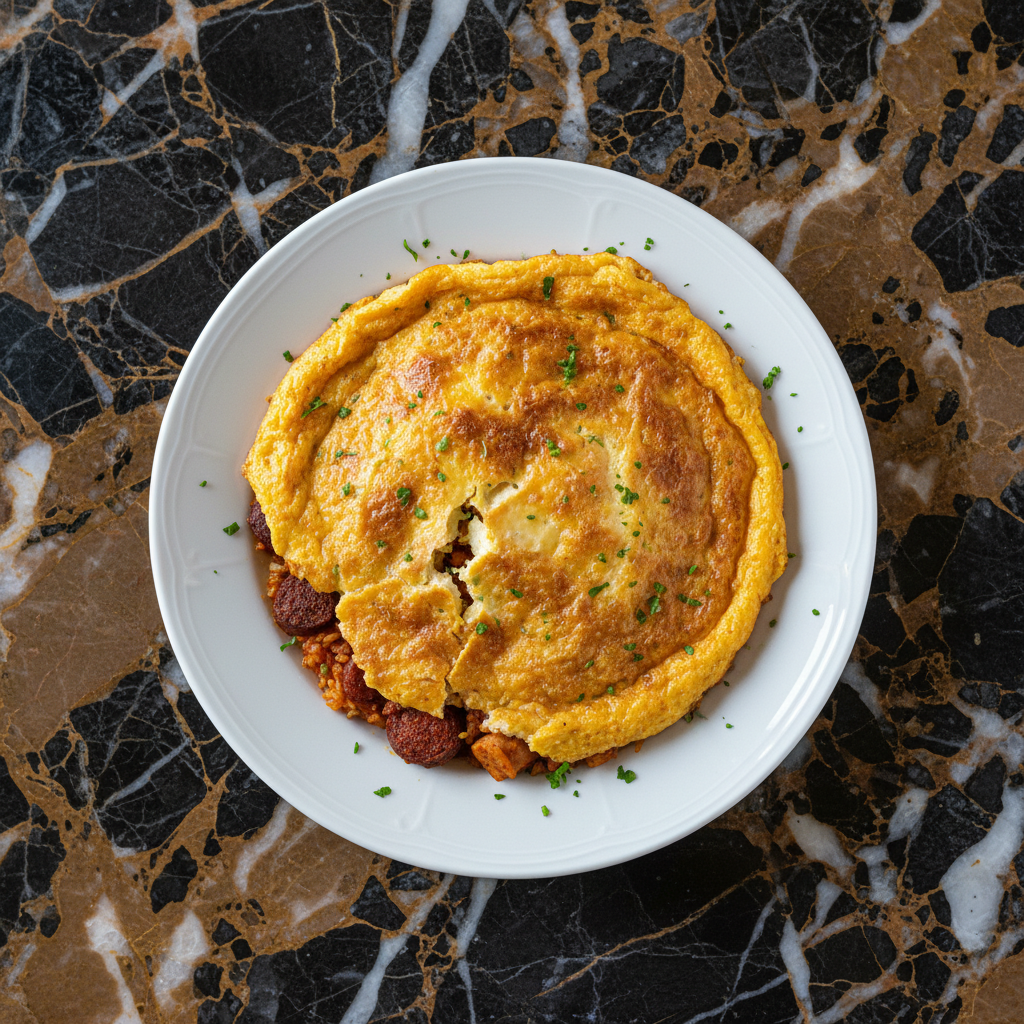 Arroz con Costra, also known as 'crusty rice,' is a traditional rice dish from the Vega Baja region of Alicante. It features a flavorful rice base cooked with various meats and sausages, topped with a golden, baked egg crust. This dish is a testament to the rich culinary heritage of the Valencian Community, offering a comforting and celebratory meal.