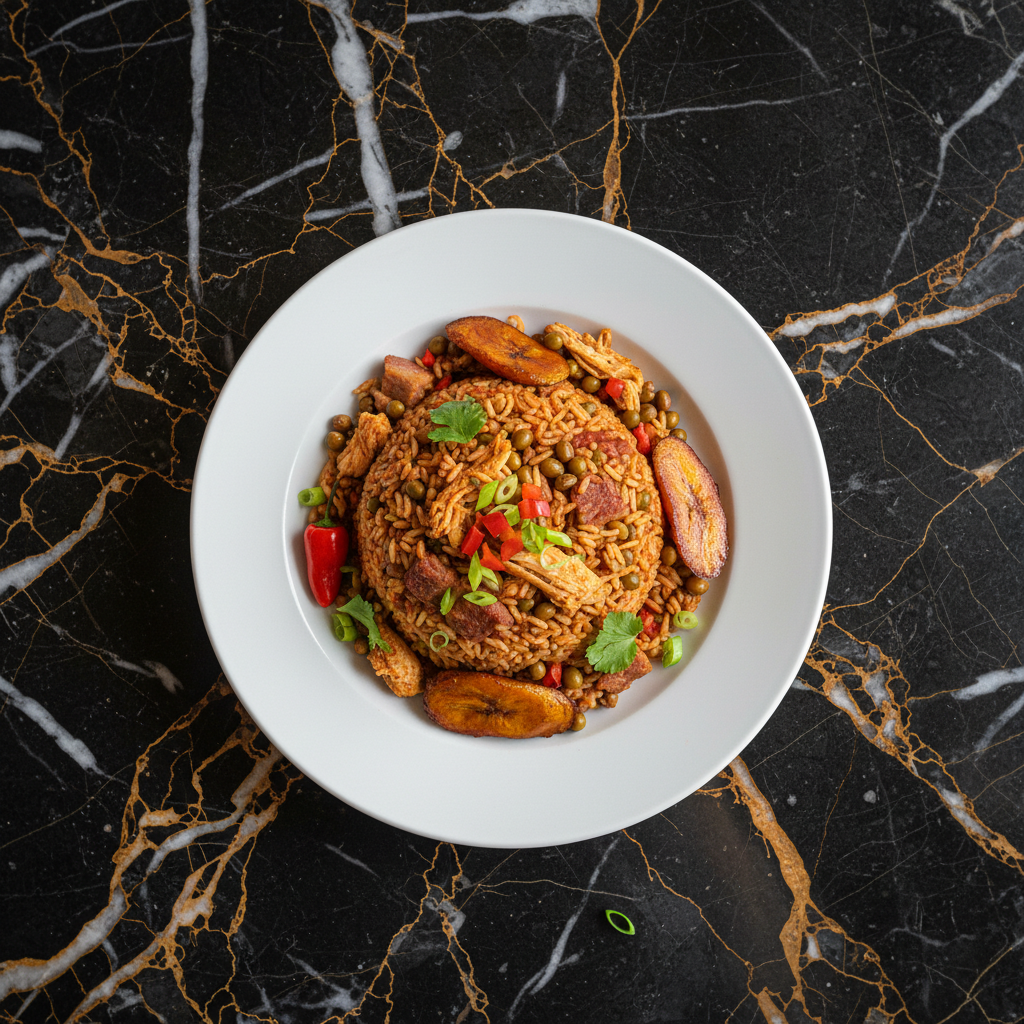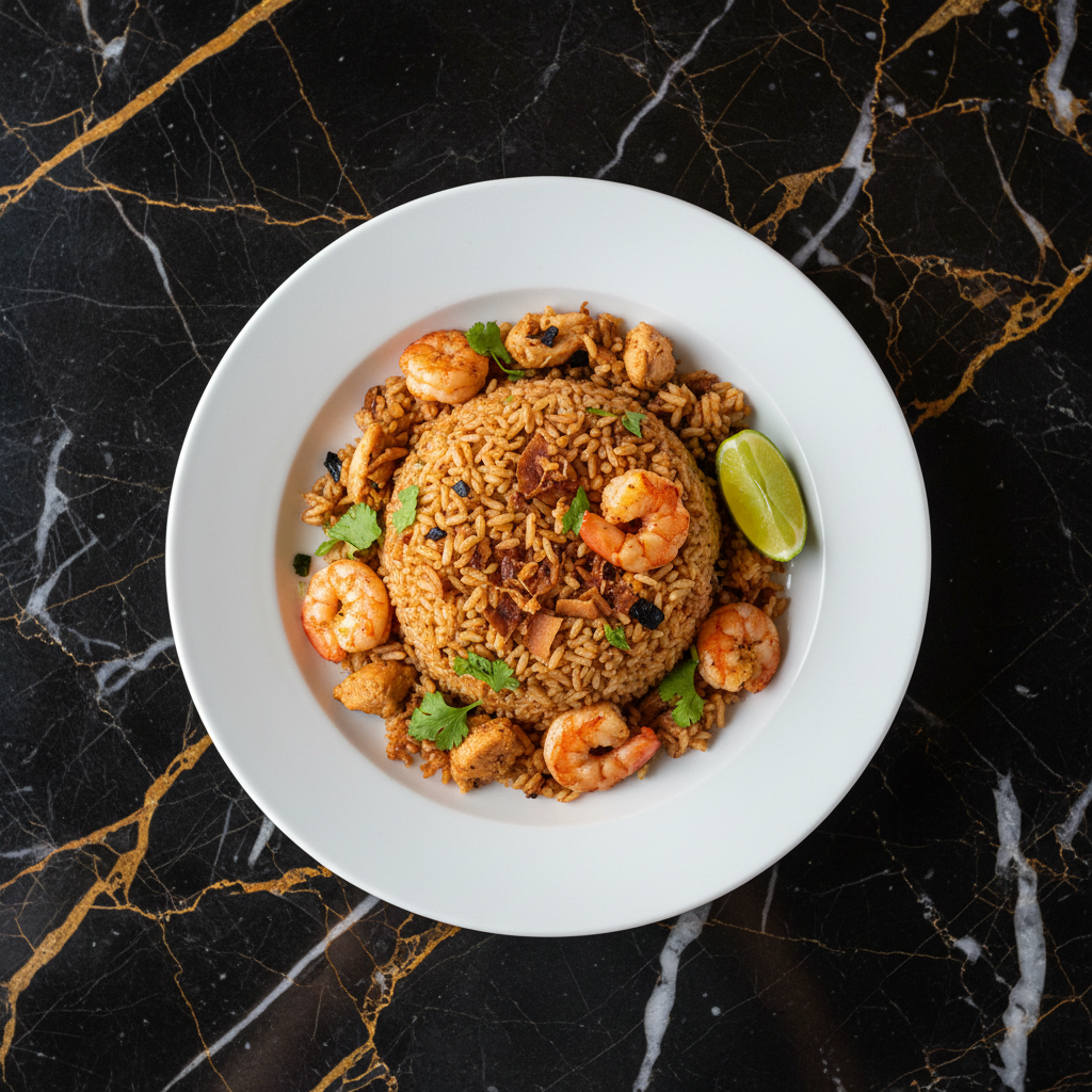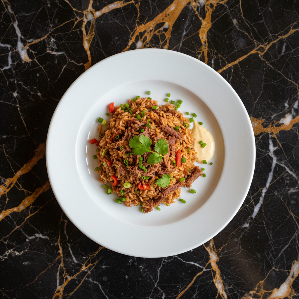 A rich and comforting soupy rice dish from the Valle del Cauca region of Colombia, featuring a medley of tender pork, chicken, and savory chorizo, simmered with aromatics and rice to a luscious, spoonable consistency.